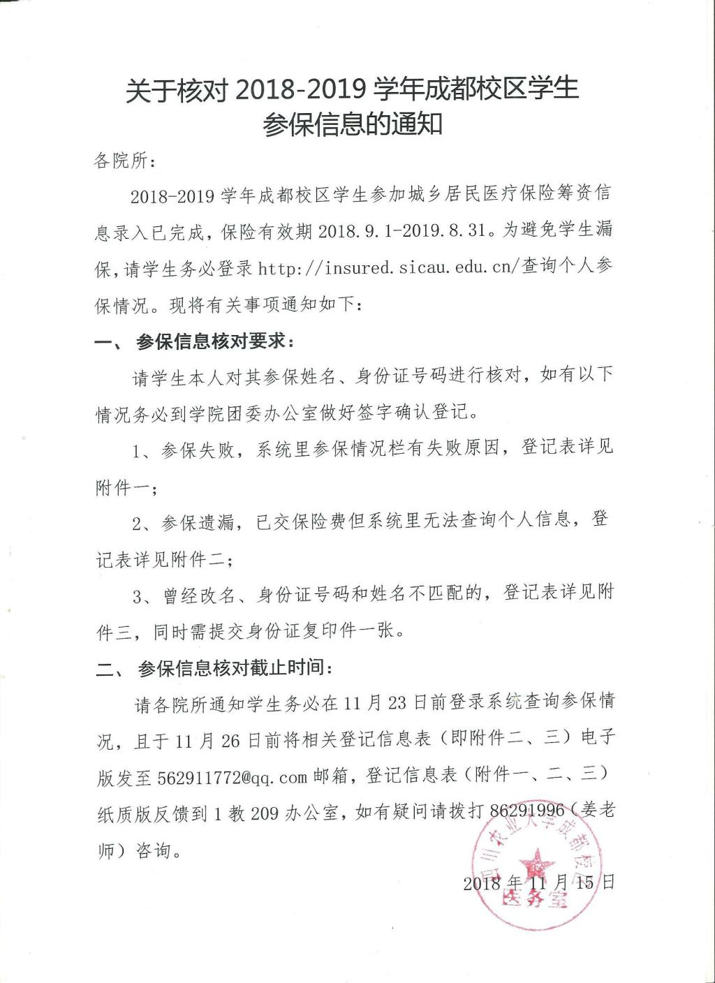 关于核对2018-2019学年成都校区学生参保信息的通知