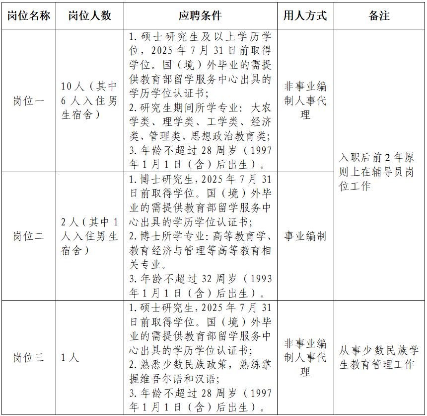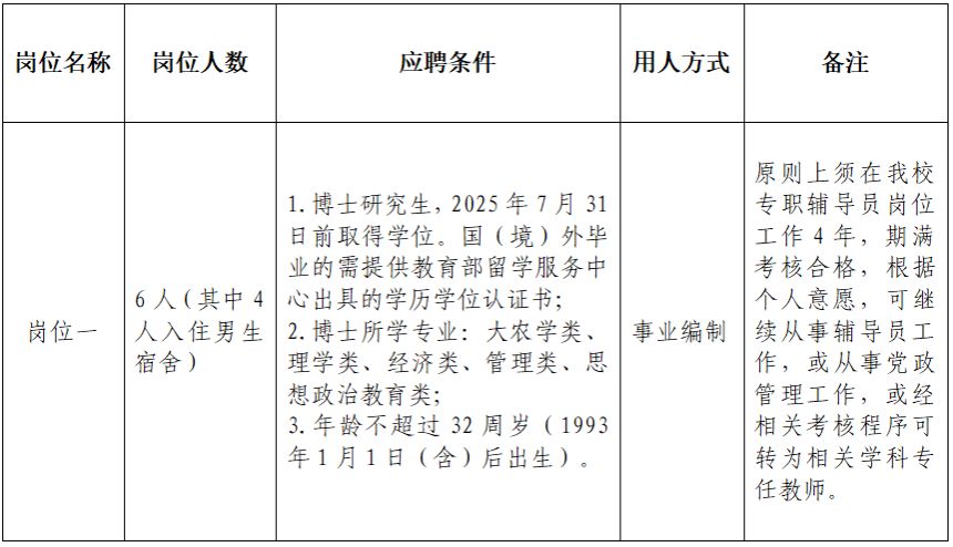 每位应聘者只能报名管理岗和辅导员岗中的一个岗位,报名截止时间:2025年4月21日17:00。