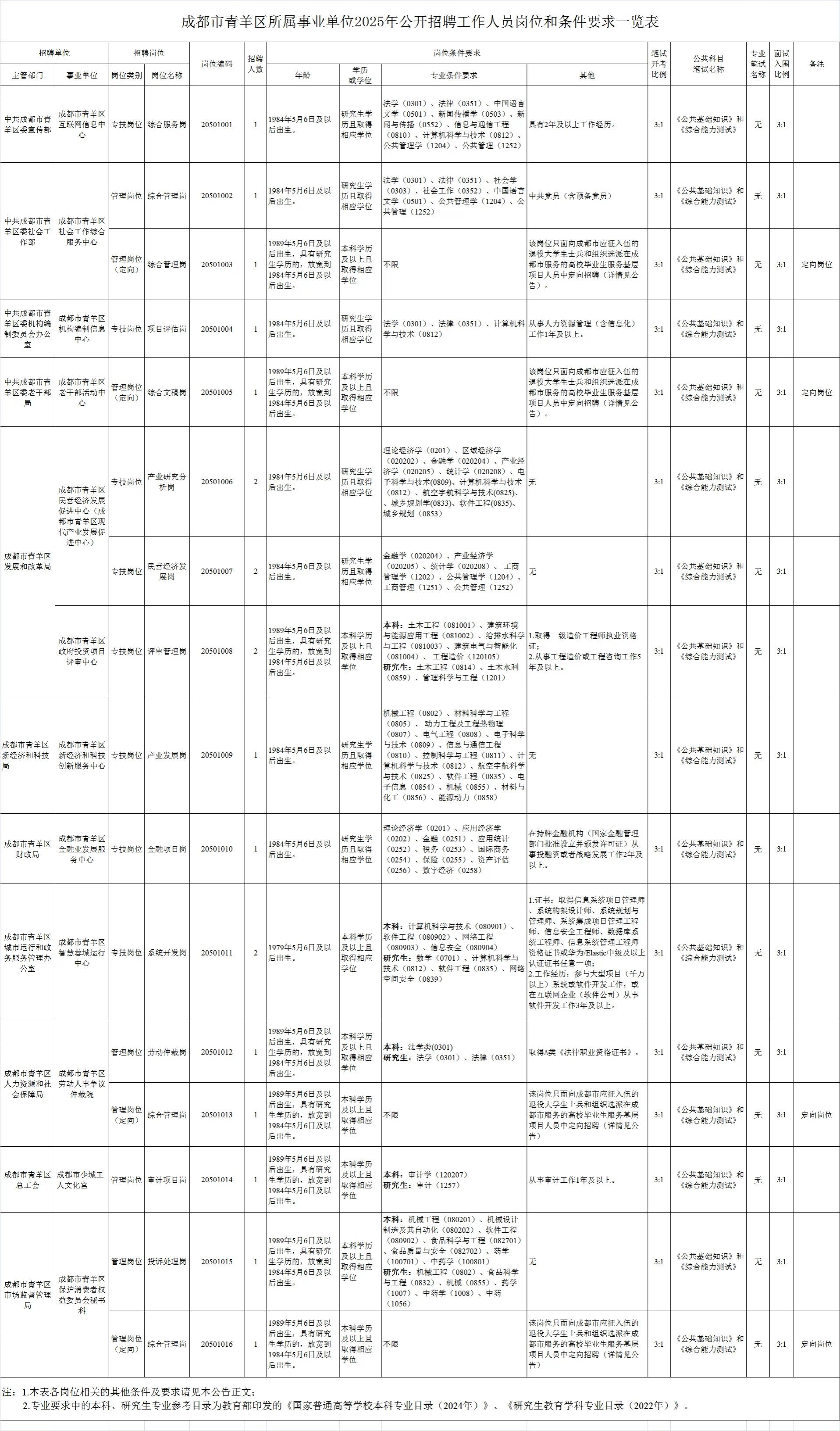 招聘岗位及名额:成都市公园城市建设管理局面向社会公开招聘工作人员9名。