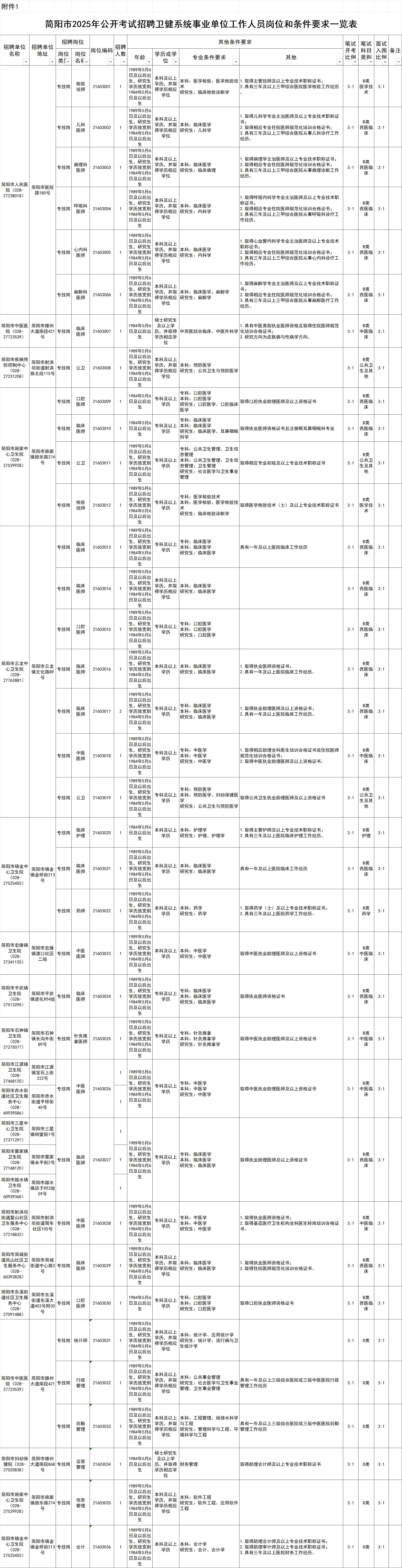 招聘岗位及名额:简阳市统战事务服务中心等30个事业单位面向社会公开招聘工作人员35名;简阳市人民医院等18个事业单位面向社会公开招聘工作人员40名。