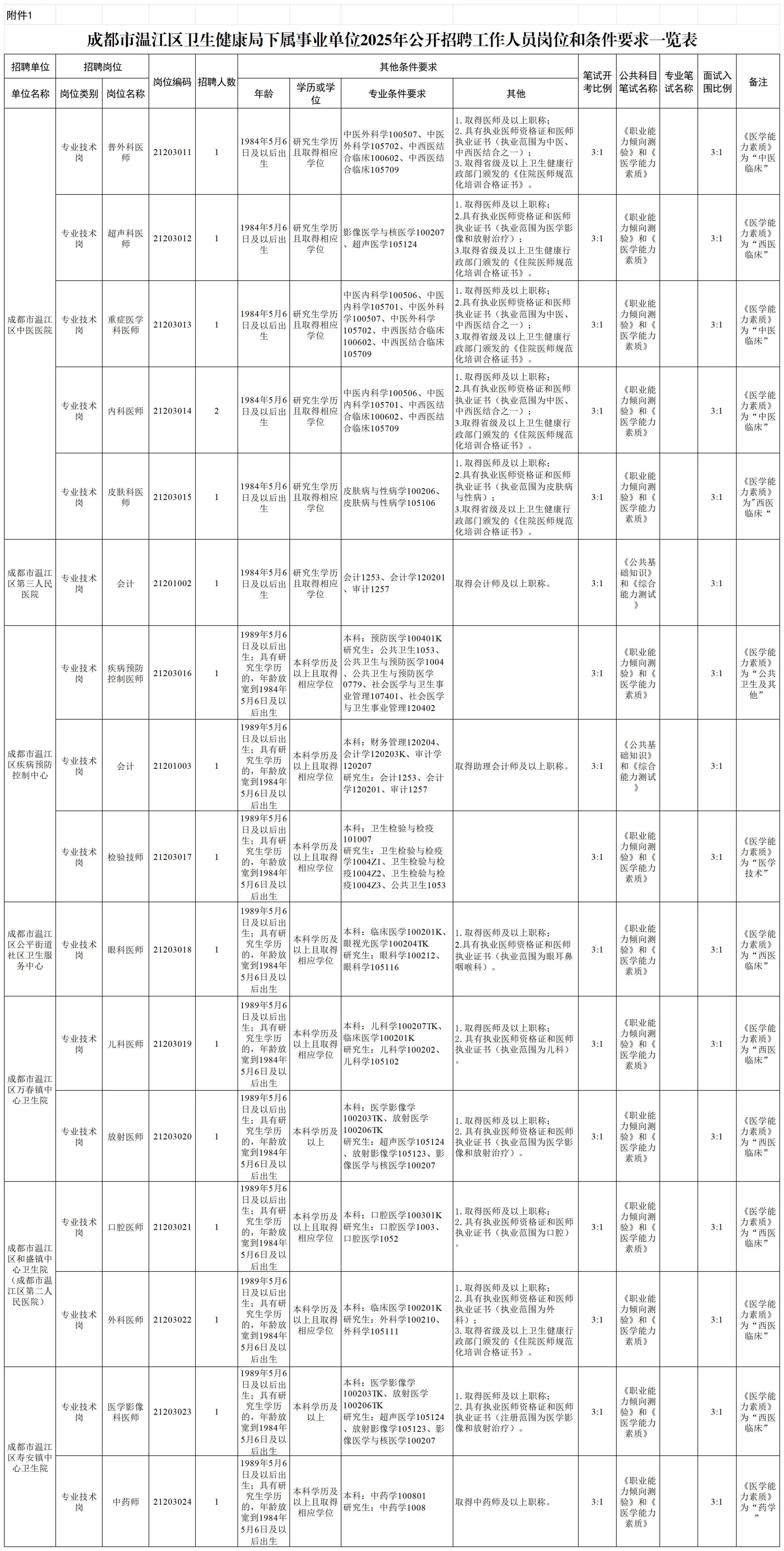 招聘岗位及名额:成华区卫健系统面向社会公开招聘工作人员20名。