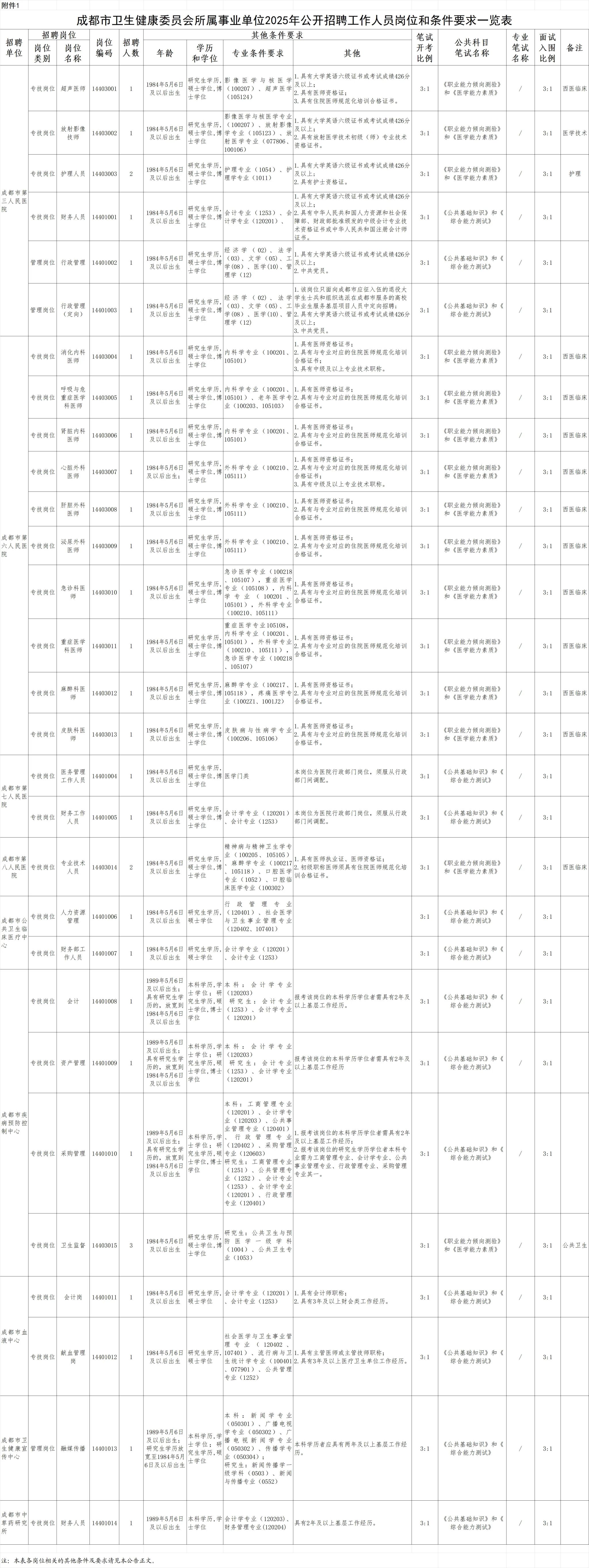 招聘岗位及名额:成都市卫生健康委员会面向社会公开招聘工作人员33名。