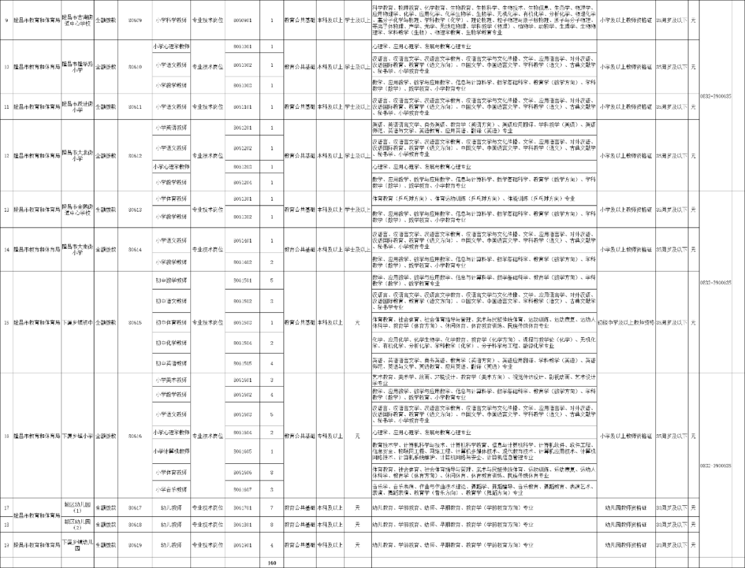 根据《事业单位人事管理条例》、《四川省事业单位工作人员招聘工作试行办法》(川人发〔2006〕9号)、《关于进一步规范事业单位公开招聘工作的通知》(川人社发〔2011〕36号)及《事业单位公开招聘违纪违规行为处理规定》(人力资源和社会保障部令第35号)等法规文件规定,按照公开、平等、竞争、择优的原则,2022年上半年隆昌市教体系统将面向社会公开考试招聘教师160名,经汇总各考聘单位及主管部门意见后,现将有关事项集中公告如下: