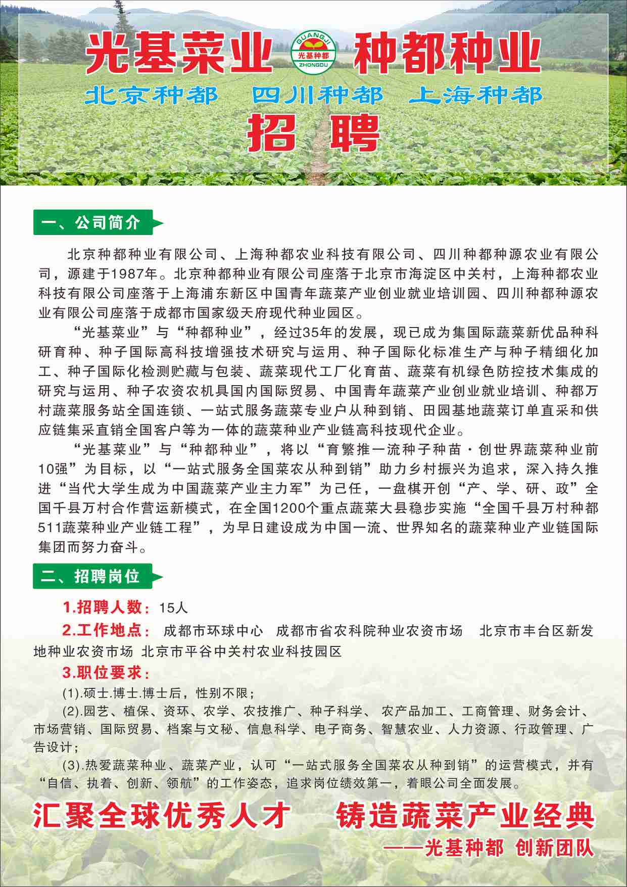 光基菜业+种都种业 招聘