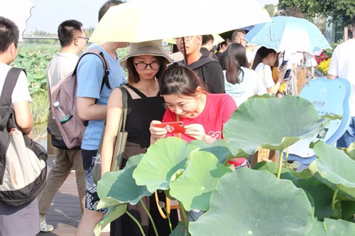 在船山区委组织部领导带领下,师生代表登上“城市之心”圣莲岛,参观了世界荷花博览园,考察了船山区城市规划建设,师生代表深切感受到遂宁市的深厚文化底蕴和船山区发展绿色经济、生态文明的执政理念。在船山区农业局领导带领下,师生代表走进永河农业产业园,走访参观菌绿生态农业科技有限公司、十里荷画景区和梓桐新村安置点,并就永河园的建设发展建言献策。