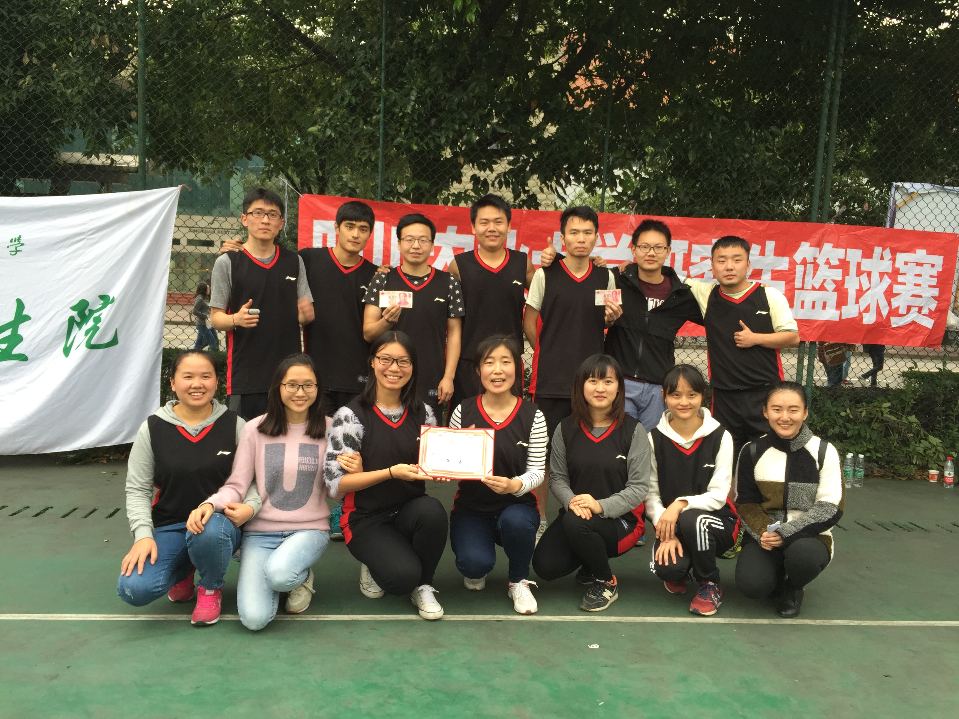 经过9天如火如荼的比拼,生命科学学院研究生院代表队勇夺比赛冠军,动物营养研究所代表队和食品学院研究生院代表队分获亚军和季军,生命科学学院研究生院的曾丽雯同学获得“优秀球员”荣誉称号。常务副主席何成敏、李泽强,文体部部长胡翔,分别为各参赛队颁奖,合照。在场上,运动员们个个身手矫健,灵活自如,传球、运球、抢球、进攻、回防,默契的配合、娴熟的技巧,赢得了在场同学的阵阵欢呼与呐喊,表现出了当代大学生应有的青春与活力。比赛开始前五分钟,拉拉队火热登场,曼妙舞姿缓解了比赛紧张的气氛。