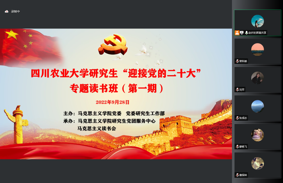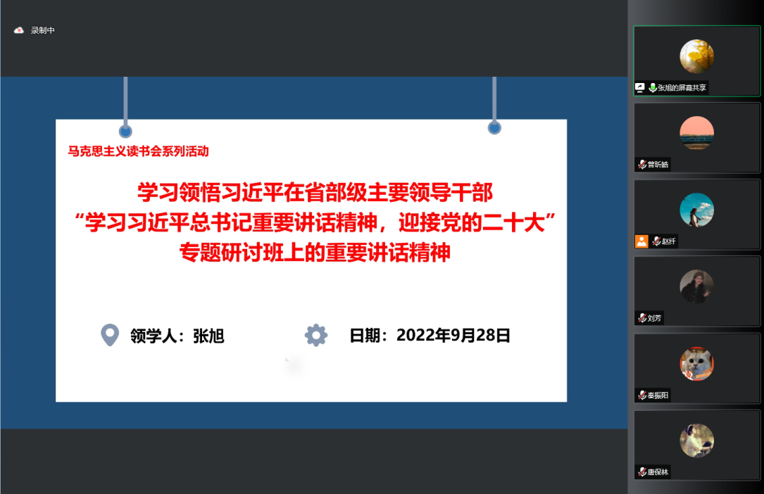2022年9月28日下午,由马克思主义学院党委和党委研工部共同主办的满冠体育研究生“迎接党的二十大”专题读书班(第一期)于腾讯会议线上顺利开展。