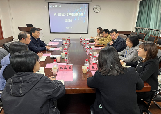四川师范大学研究生院院长雍彬介绍了学校发展历史、学科特色和研究生教育发展基本情况。他谈到,作为履新研究生院后的首次交流调研就选择了川农大,是因为川农大在科学研究、人才培养、社会服务和文化传承创新方面颇有建树,毕业生质量受到社会广泛赞誉,是省属院校的标杆和榜样。希望通过本次调研交流,认真学习川农大在研究生培养方面的好思路、好做法,作为标杆看齐、向榜样学习。